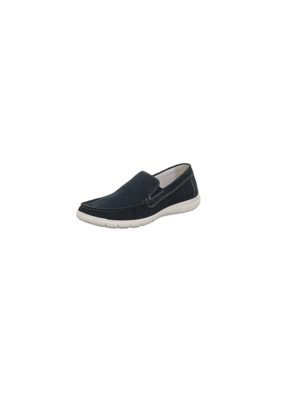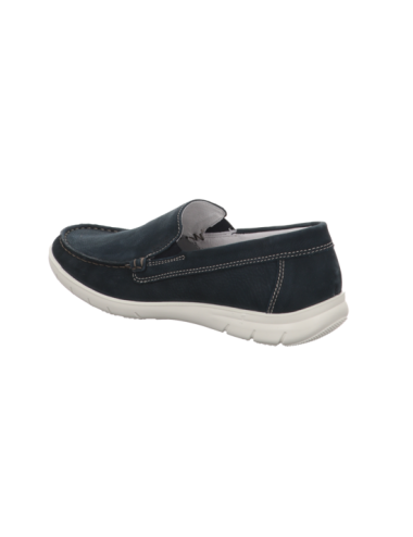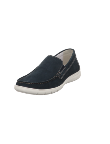 Slipper in blauen Rauhleder mit Gummisohle.
