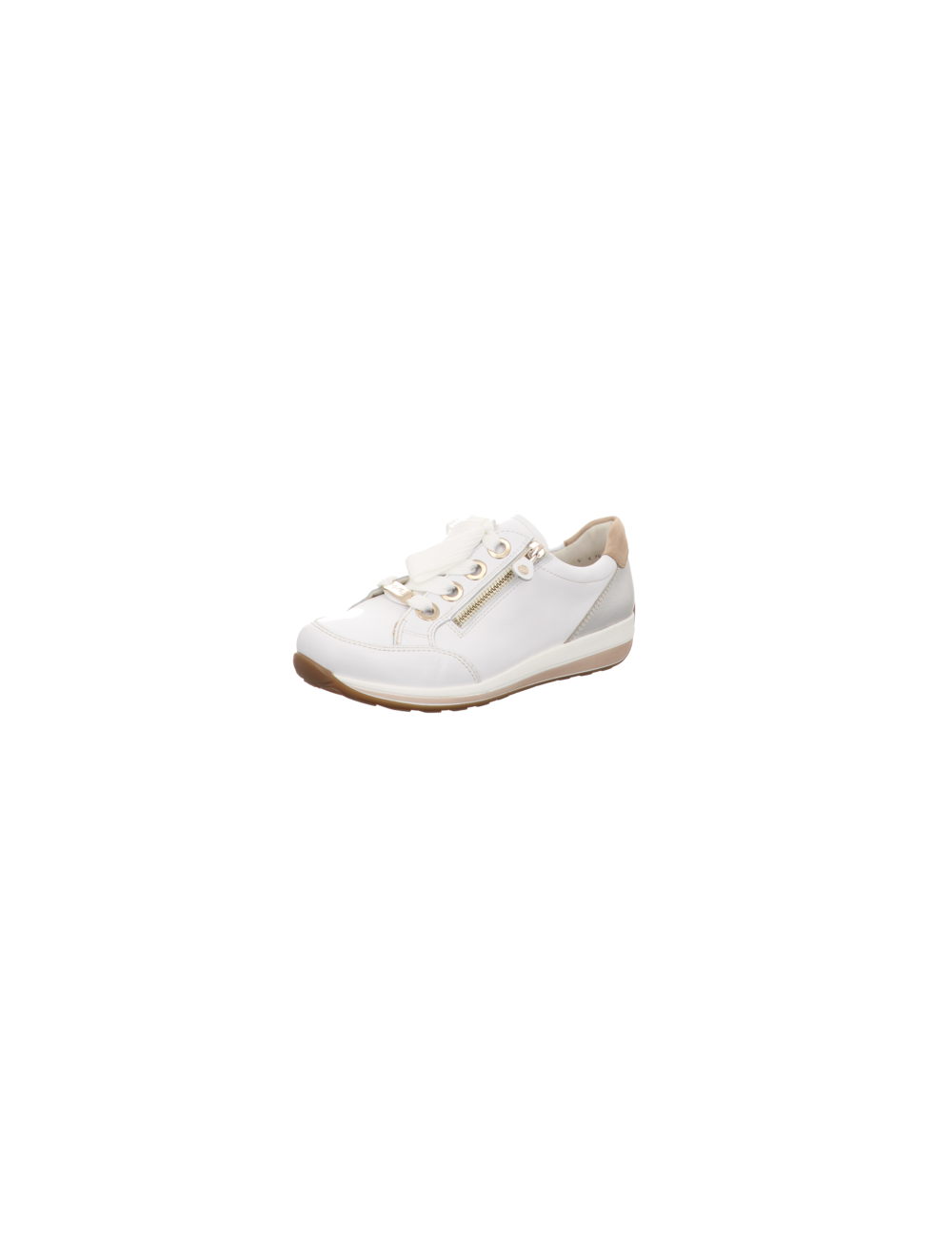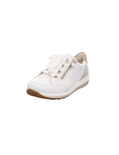 Sneaker in weissen Glattleder mit Gummisohle.