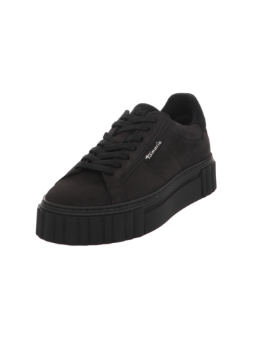 Sneaker in schwarzen Rauhleder mit Plateaugummisohle.