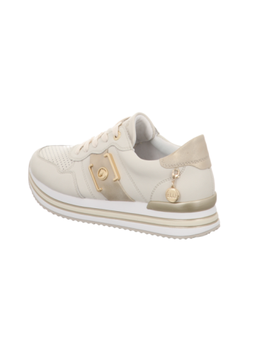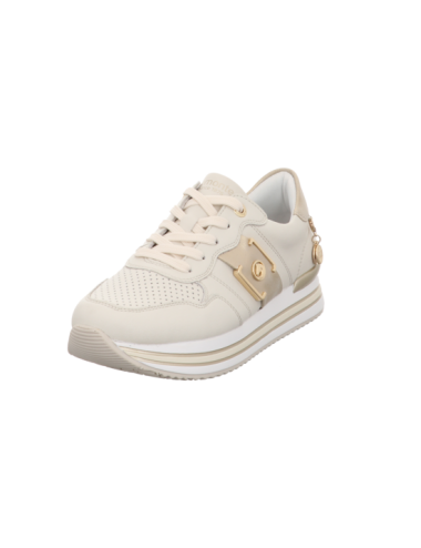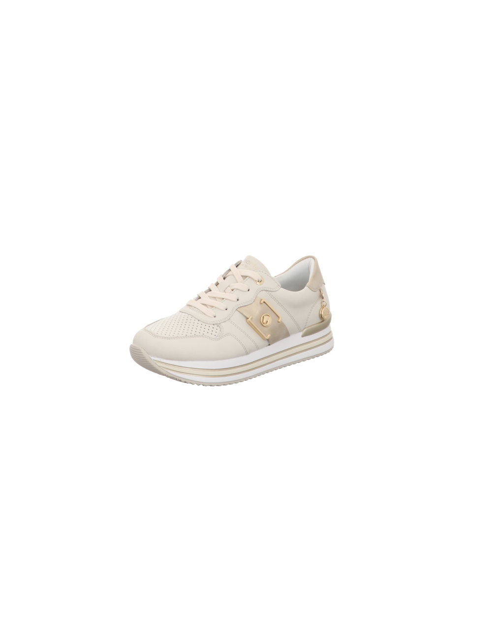 Sneaker in beigen Glattleder mit Plateaugummisohle.