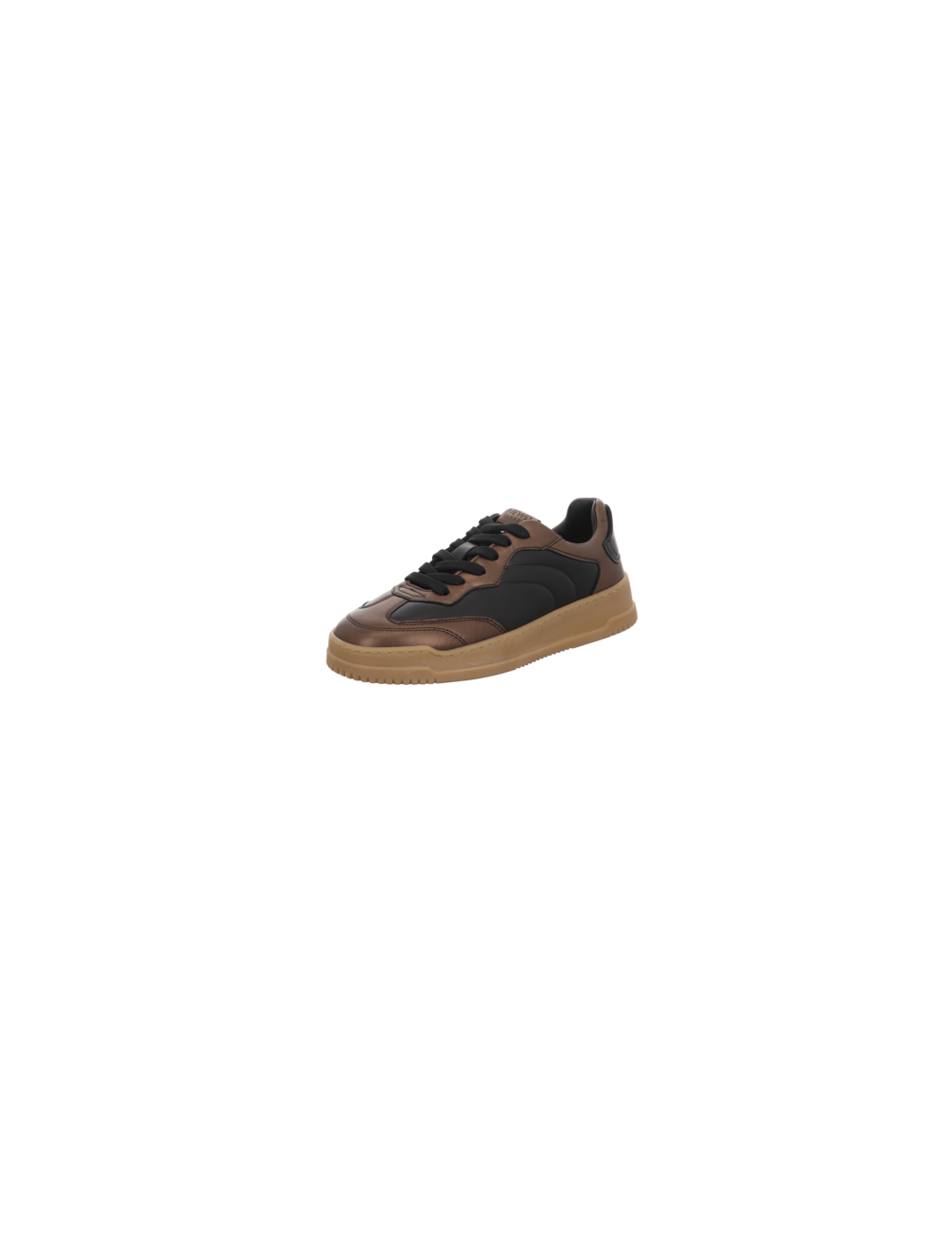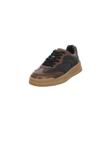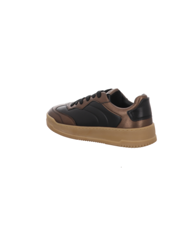Sneaker in schwarzem Glattleder mit bronze Details und einer Gummisohle.