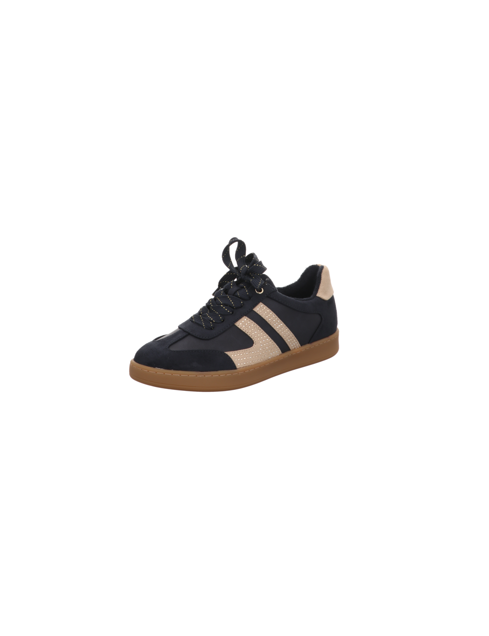 Sneaker in blau kombinierten Glattleder mit Gummisohle.